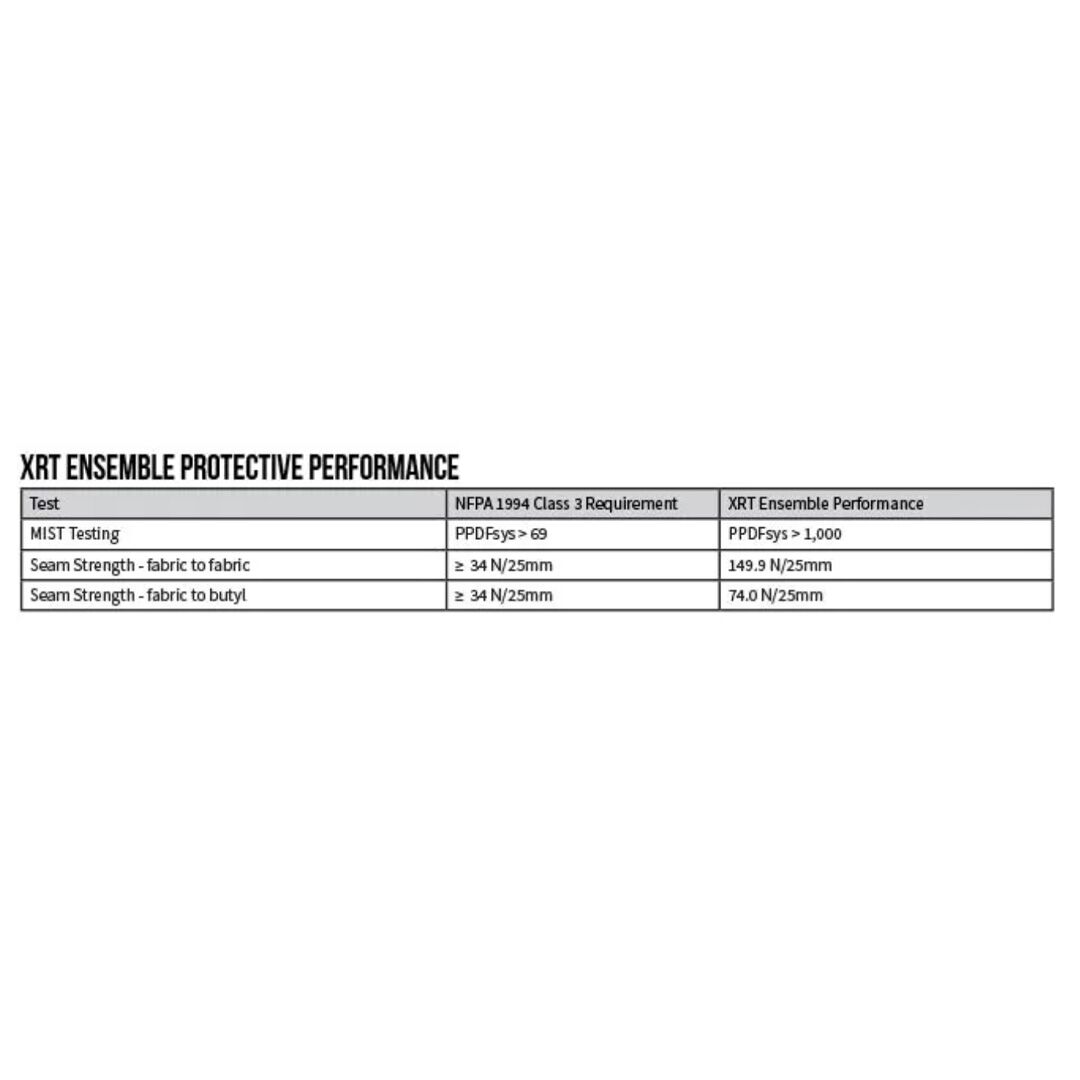 The Blauer XRT suit is certified to the NFPA 1994 standard, ensuring Class 3 protection against liquid, vapor, and particulate CBRN agents at levels below IDLH.